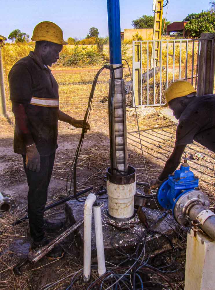 Se realizó una perforación muy profunda en 2007, a 325 metros de profundidad, con un depósito de agua de 150 metros cúbicos a 20 metros de altura para abastecer a 8 aldeas a nuestro alrededor, además del sitio de Keur Mariama, aldeas que son todas musulmanas al 100%.
